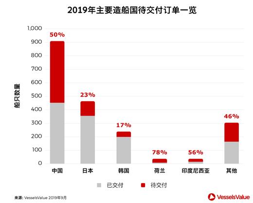 中国同时也是待交付船只最多的国家,占其2019年订单总量的50%。