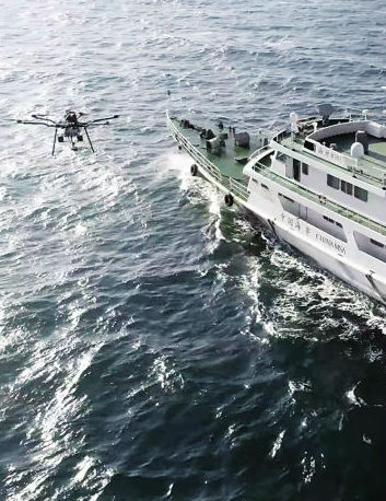 近期,大连海事局执法人员及大连钧鸿无人机组成员乘“海巡0301”号海事巡逻船搭载无人机对老铁山水道、大三山航道等船舶交通流密集海域进行了巡航。本次行动共用时6小时,累计巡航里程51海里,覆盖水域面积133平方公里。以船载无人机对上述水域进行全方位巡航,通过无人机预警喊话、单船跟踪、实时监控等手段,准确直观、立体地接收数据,对航道内海面情况及船舶排污进行监控,从而形成海、陆、空“三位一体”的巡航执法新模式,坚决整治海域违法排污行为,保护海洋生态系统,为渤海综合治理攻坚战保驾护航。