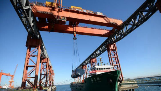 太重重件码头工作繁忙(央广网发 天津港保税区供图)