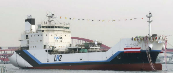 图为:全球首艘液态氢运输船,图源:日本共同社