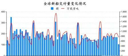 从船型来看,散货船的交付数量为33艘,共计3638126载重吨;集装箱船的交付数量为11艘,共计74261TEU;油船的交付数量为8艘,共计1986780载重吨;化学品船的交付数量为12艘,共计457785载重吨;液化气船的交付数量为8艘,共计715508立方米;海工船的交付数量为18艘,共计258688载重吨;其他船型的交付数量为14艘,共计85542载重吨。