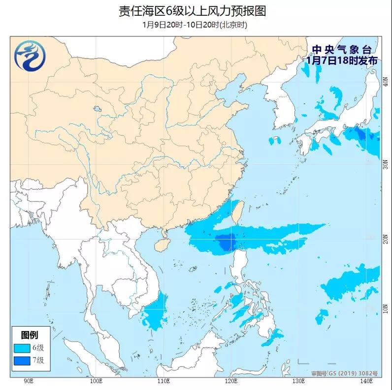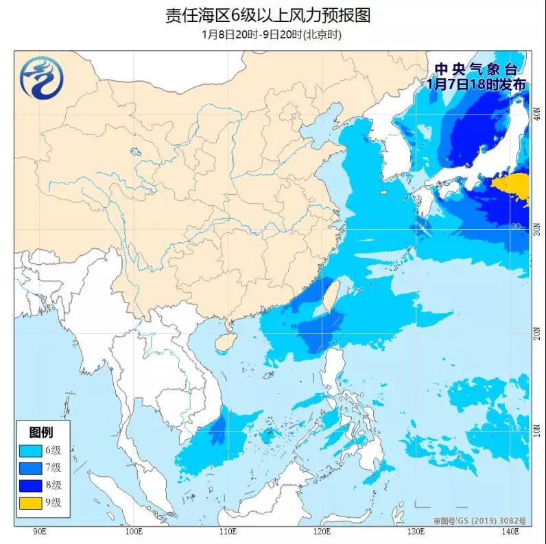 7日夜间至8日白天,渤海、渤海海峡、黄海大部海域、东海北部海域将有7~8级、阵风9~10级的大风,其中东海东北部部分海域的风力可达9级、阵风10级,东海南部海域、台湾海峡、台湾以东洋面、巴士海峡、南海东北部海域将有6~7级、阵风8级的偏北到东北风。受大风影响海域航行、作业的船舶,需注意航行安全。