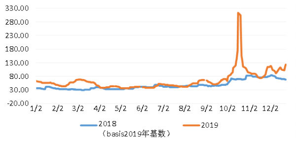 数据来源:上海航交所(2019年2月8日、5月3日、10月4日指数停发3期)
