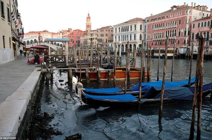 据英国《每日邮报》1月13日消息,意大利威尼斯运河进入枯潮,河床将近干涸。这座城市在去年11月刚刚遭受洪水泛滥,水位上涨至50年以来最高。当时很多路面建筑,如圣马可广场和圣马可大教堂,都被洪水淹没,损失超过十亿欧元。