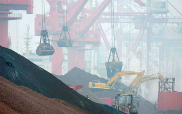 近日,青岛港码头,莱芜钢铁集团采购的15.8万吨铁矿石靠泊卸货。