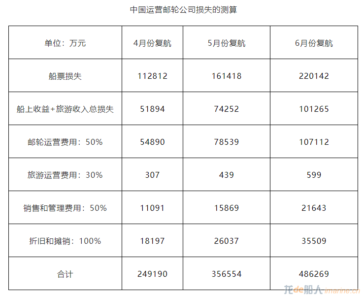 第三种情景(可能情景),6月复航,邮轮公司停航4个月。