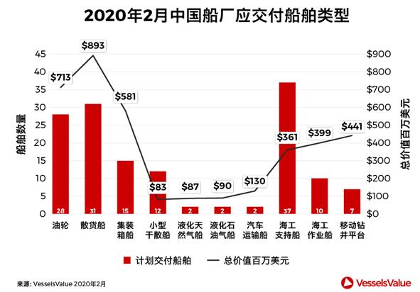 根据VesselsValue的数据,中国船厂原计划在本月须交付价值34亿美元(不包括OSV)的新造船。