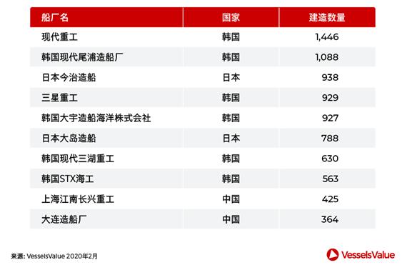 其中,日本372个船厂建造了12,470 艘船(平均每个船厂建造34艘);韩国在131个船厂建造了7,492 艘船(平均每个船厂建造57艘);而中国709个船厂总共建造了11,830 艘船(平均每个船厂仅建造17艘)。