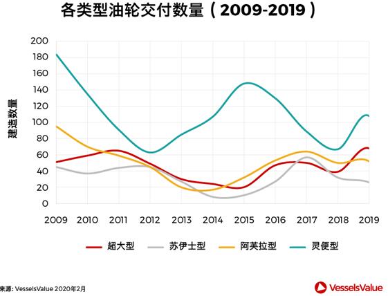 2015年油轮市场的最大特点是,当年所建造的小型油轮的数量在灵便型油轮达到峰值的同时降至了最低点。在过去的十年中,大型油轮建造数量则保持相对稳定。