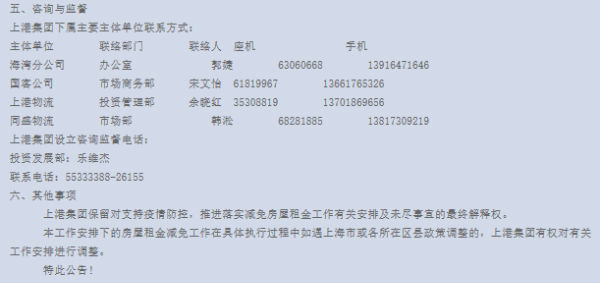 具体的,公告指出,对于租赁上港集团下属合并报表范围内分、子公司的自有性房产,且从事生产、研发、办公、商业配套等生产经营活动的非国有中小企业,在2020年6月30日之前,提交申请材料并经主体单位审核通过后可减免申请人2020年2、3月的房屋租金。