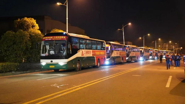 2月24日19点,江南造船首批“爱心复工专车”载着129名员工及家属安全抵达生活区。