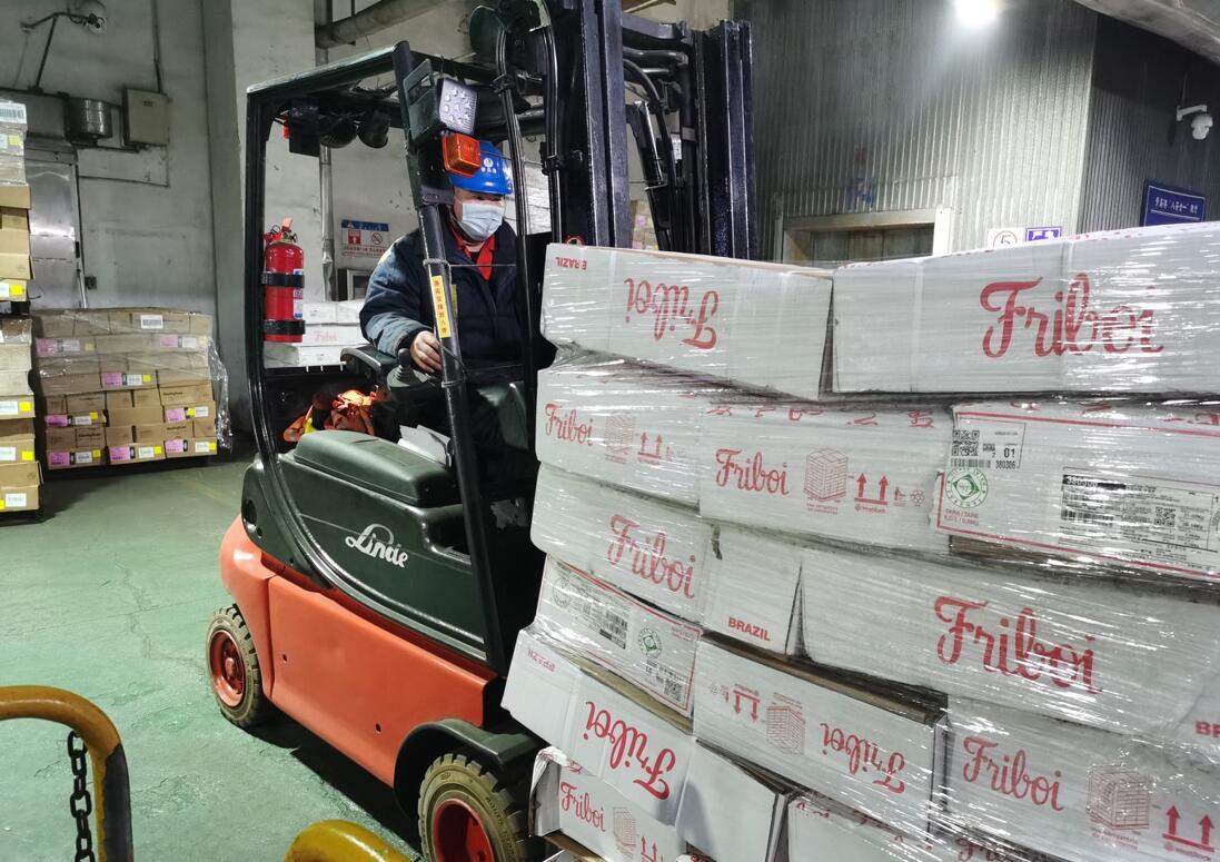 为保证疫情期间的业务办理效率,青港物流冷链中心积极优化组织生产,全面发挥全程物流优势,解决了2月冻柜高峰与疫情带来的运输车队、人员压力等难题。仅用2天,青港物流冷链中心便完成了此次水产中转货物订舱到码头装船,为客户提供了优质高效的服务。