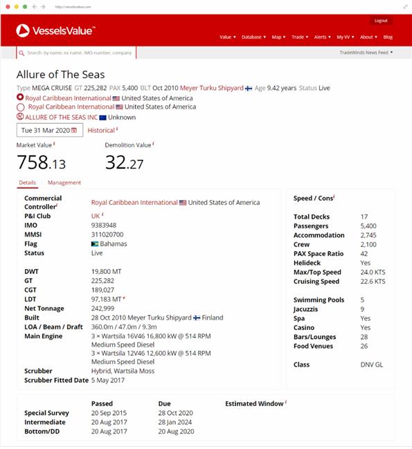想要了解有关邮轮的一切,请联系https://www.vesselsvalue.com/。