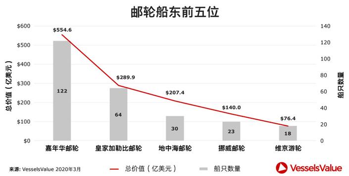 根据全球领先的航运估值和大数据平台VesselsValue的数字,全球邮轮船队共有483艘船只,总价值超过1670亿美元(截至2020年3月19日)。其中一些邮轮的资产价值超过10亿美元,如此高的单船估值对于VV来说也是首次――证明了邮轮为当今世界上最昂贵的海上资产之一。