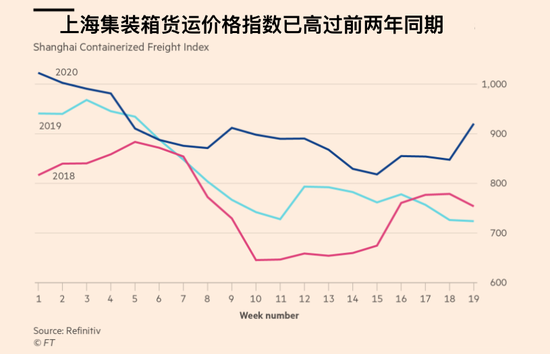 首先航运业最大的危机来自于价格和运单两个方面。目前业内调研机构预测今年整体海运运单量将下跌12%左右。不过上海集装箱货运价格指数五月中旬已经回到900点以上,高于此前两年同期水平。(图1&2)