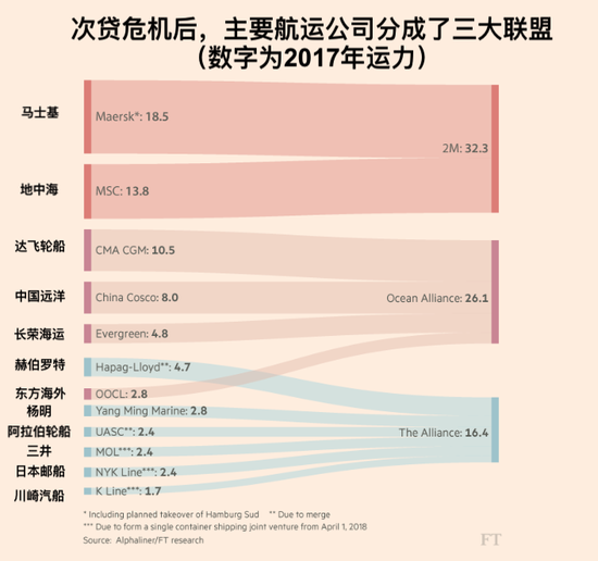 而过去十年航运业经历过的大规模并购整合,以及货运联盟的形成,也能有效避免价格战的形成。目前全球主要货运公司分成三个联盟,内部在运力调配,班轮交接等领域有更密切的协同合作(图3)。