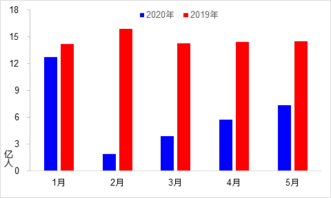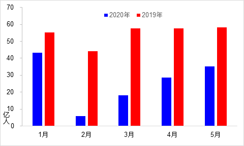 5月,完成营业性客运量7.4亿人,恢复至去年同期的50.7%,恢复程度较4月提高10.9个百分点,其中公路营业性客运量下降49.2%、水路客运量下降51.0%。