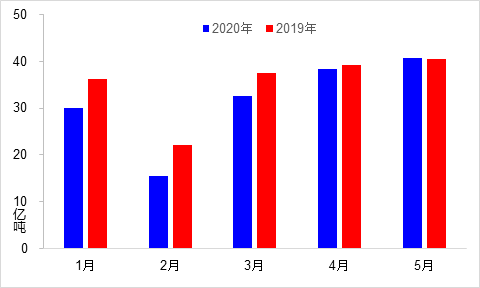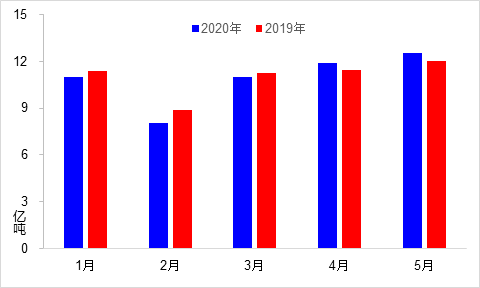 1-5月,完成货运量157.3亿吨,同比下降10.4%,其中公路货运量下降12.0%、水路货运量下降9.9%。
