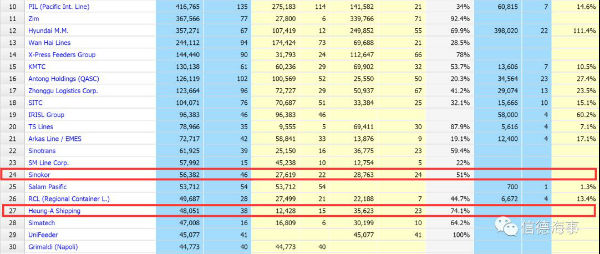 按照目前数据,两家于2019年正式合并后控制运力将达到104433TEU,超过了我国的海丰国际(SITC)所控制运力104071TEU。挤进全球20大集装箱班轮公司行列。