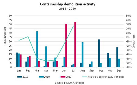 早在今年4月,BIMCO将全年集装箱船拆解量预期从20万标准箱上调至30万标准箱,较2019年增长63.8%。