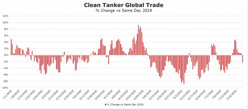 成品油轮市场的货量海里总体上与2019年的水平保持一致,表明该行业的波动性较小。