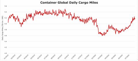集装箱船的货量海里是受到新冠疫情影响最严重的领域之一。在过去的六个月中,货量海里一直低于2019年同期水平,不过随着货量海里的恢复,与去年同期的差距开始逐步缩小。