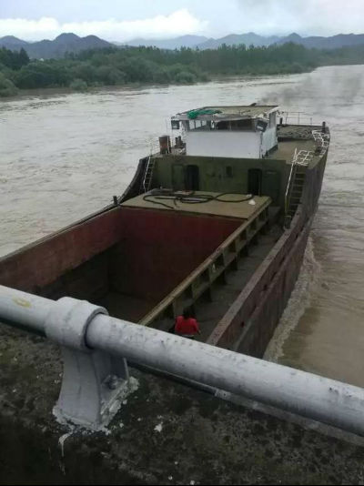 2016年9月16日12时左右,一艘“三无”闲置船舶在永安溪受急落水影响发生走锚,触碰台缙高速永安溪普叶大桥并卡在桥下,船上无人值守。