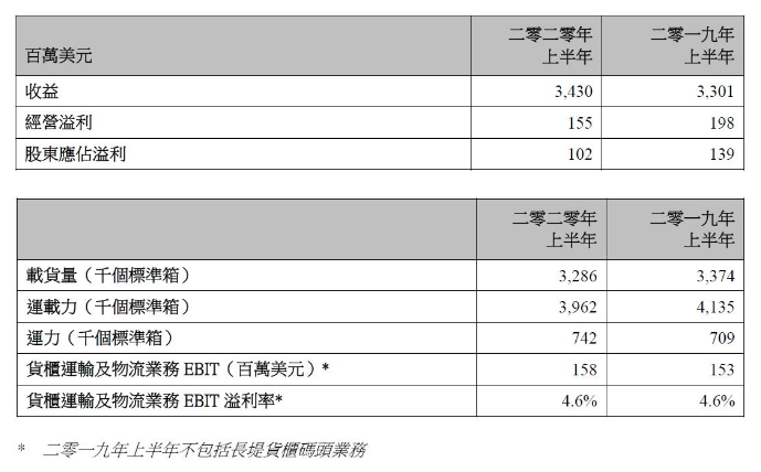 东方海外(国际)有限公司(简称东方海外国际),8月21日公布2020年上半年业绩报告。