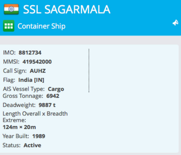 图为“SSL SAGARMALA轮”