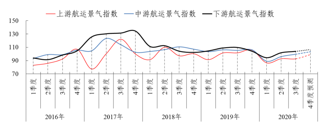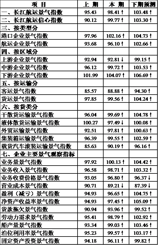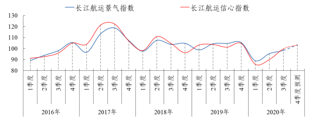 下期景气状况预测:当前,沿江地区各地正按照推动高质量发展、构建新发展格局的要求,在抓好常态化疫情防控中,持续做好“六稳”工作、落实“六保”任务,巩固经济稳定恢复增长态势,将有效促进长江航运经济运行稳步向好,长江航运景气状况有望继续回升,但国内外宏观经济和政策环境复杂多变,长江航运仍将面临不少困难和挑战。根据调查显示,2020年四季度长江航运景气指数和信心指数预计分别为103.48点和103.30点,较本季度分别上升5.07点和3.53点,均回升至景气区。