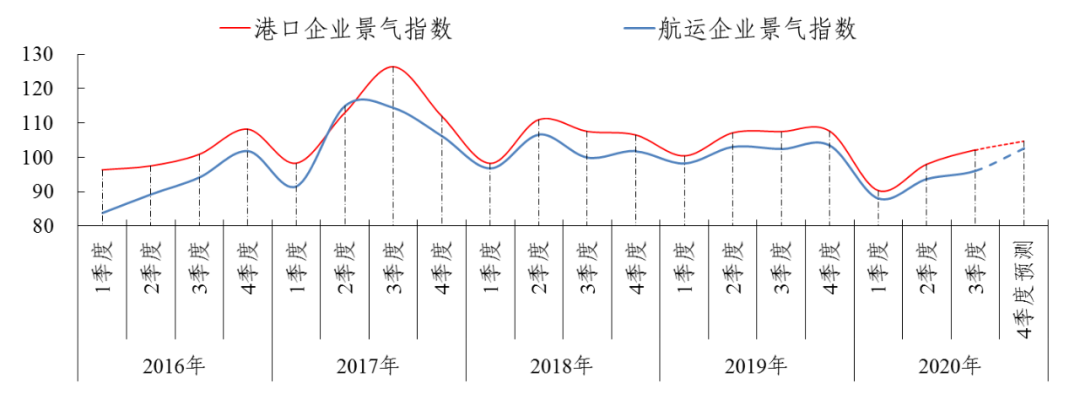 分类景气状况:三季度,港口企业景气指数为102.16点,较上季度上升4.20点,回升至景气区;航运企业景气指数为96.10点,较上季度上升2.42点,仍处于不景气区。