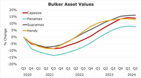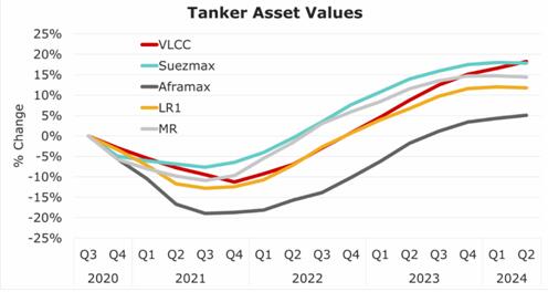 随着油轮订购活动和预期收益难以支持对船厂服务的更高需求,资产价值将面临持续的下行压力。