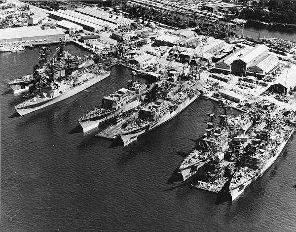 在二战结束后,美苏(俄)驱逐舰以上主战舰艇的建造历史上,这样的景象也没有出现过。即使冷战高峰期,美国同时在英格尔斯造船厂内建造6艘斯普鲁恩斯级驱逐舰时,也没有出现同一天下水2艘的情况,而冷战结束后,美国虽然建造了多达60多艘伯克级驱逐舰,但那是从1990年到现在,年均建造数量大概是2艘左右。