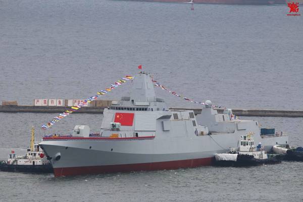 图片:挂上国旗的055双胞胎下水,感谢原作者