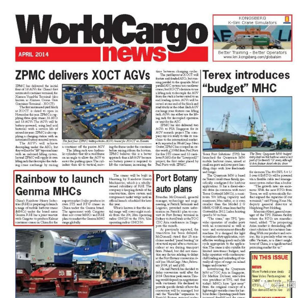 图3:2014年4月,港机行业国际知名报刊WCN头版报道GHC问世