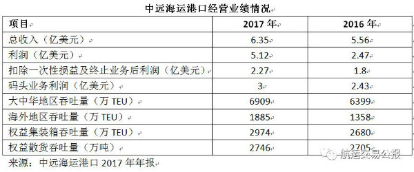 权益吞吐量方面,集装箱量为2974万TEU(2016年为2680万TEU),同比增加11%;散杂货量则为2746万吨(2016年为2705万吨),同比上升1.5%。