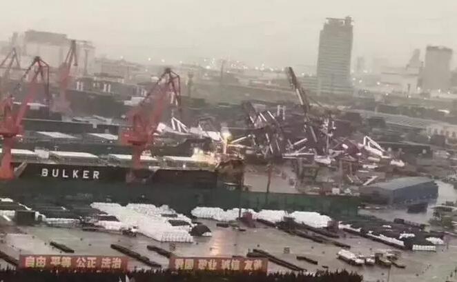 2018年6月13日下午4:00左右,青岛遭遇12级暴风雨天气袭击并伴有冰雹,导致青岛港四台左右岸吊倒塌和部分船只出现不同程度受损!