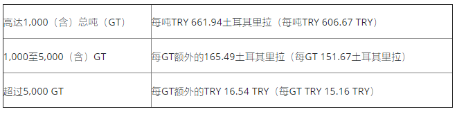 对被扣留的排放石油、污染压载水、固体废物或生活废水的船只处以罚款,最高可达每吨661.95土耳其里拉(88.82美元/吨)。