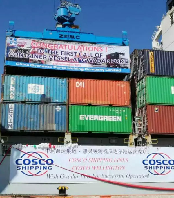 11月13日,巴基斯坦由中方运营的瓜达尔港正式开航了!当天下午3时许,中远“惠灵顿”轮从新建的瓜达尔港出发,将来自新疆喀什的货物,转运到中东和非洲。