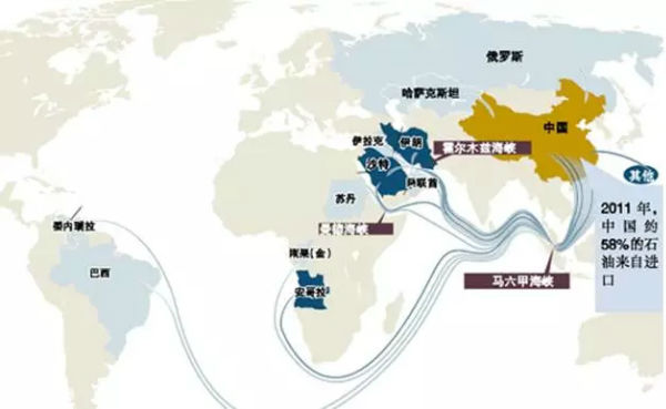 中国的能源特别是石油,主要来自于中东,而原有从中东运到中国,原来的话,千古华山一条路――必须穿过马六甲海峡。
