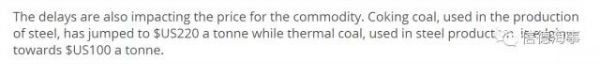 据澳大利亚当地媒体的报道显示,由于压港的原因煤炭的价格也受到了影响,炼焦煤价格调涨至220美元/吨,而动力煤也逐步靠近100美元/吨。