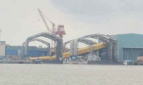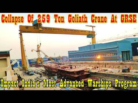 据印度“防务更新”网站5月1日发布的文章称,4月17日,印度加尔各答加登•里奇造船工程公司一部重达250吨的龙门吊发生坍塌,龙门吊位置覆盖了模块车间、干船坞和倾斜泊位,而当时一艘正在建造的印度海军P-17A护卫舰正在建造,倒塌事件对该舰造成直接的影响。由于船厂高层的隐瞒,本来4月17日的事故却直到5月才正式曝光。