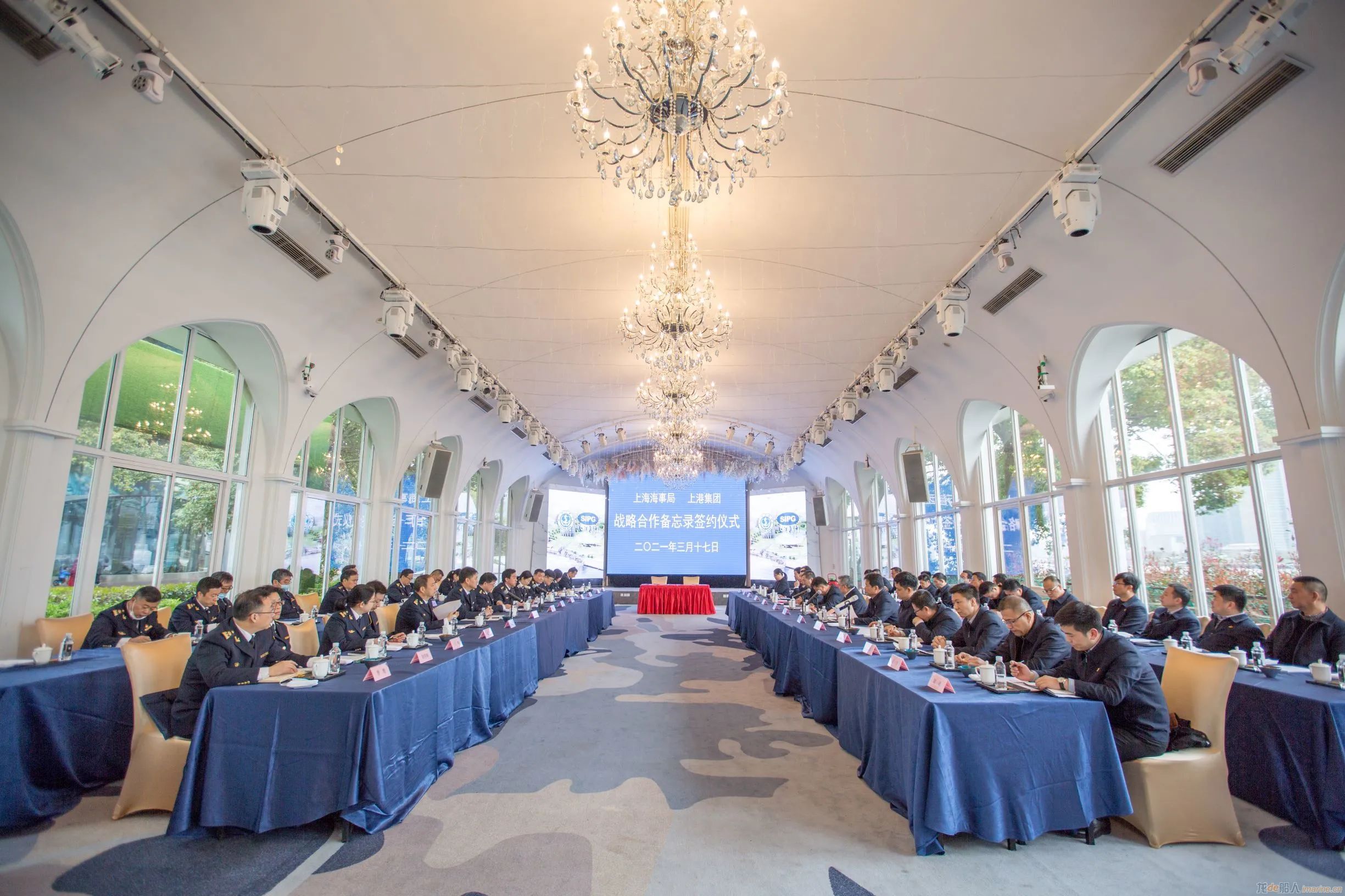 上海海事局党组书记、局长肖跃华,上港集团党委书记、董事长顾金山,党委副书记、总裁严俊出席;上海海事局党组成员、副局长吴红兵,上港集团副总裁王海建分别代表双方签署战略合作备忘录;上海海事局党组成员、副局长汪志军主持会议。