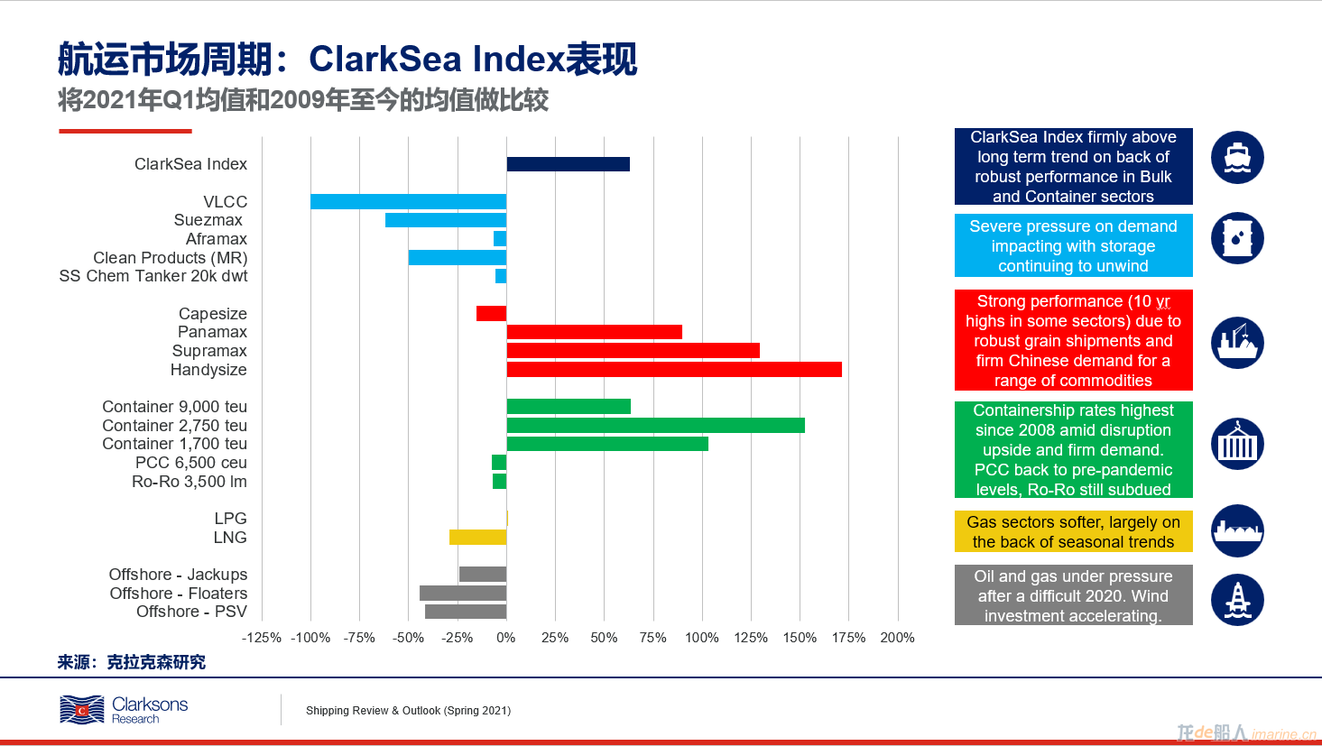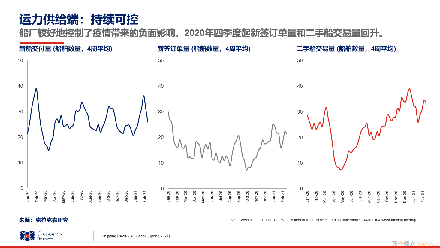 尽管新冠疫情对航运业的压力至今依然存在,但市场情绪有所改善,“绿色与科技”在疫情后期的规划中起到更重要的作用。随着复苏的持续,物流中断等因素带来的影响可能会减弱,但运力供应有限增长(改善经济范围不断扩大)可能有助于航运市场维持进一步的增长并进入周期的下一个阶段。