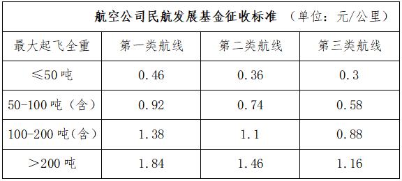 调整后的航空公司民航发展基金征收标准。制表:王震