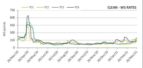 船舶经纪公司Intermodal经纪人Vasilis Moiris表示:“受影响最大的板块是油运和集运。航经苏伊士运河的油轮相关航线运价均出现上涨,自3月23日事故发生后,部分航线的运价涨幅已超过80%。其中,苏伊士型所受影响立竿见影,阿芙拉型紧随其后,而LR2和LR1型成品油轮的变化可能会持续到下个月。”
