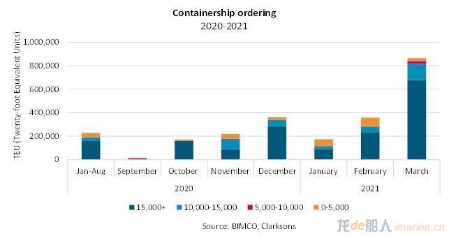 根据海运组织波罗的海国际海运理事会(BIMCO)的数据,上个月集装箱运输船新造船订单包括45艘超大型集装箱运输船和27艘小型集装箱运输船,订单总箱数达到866060个标准箱,打破了历史纪录。在经历了2020年最低订单水平之后,这也标志着该行业迎来转机。