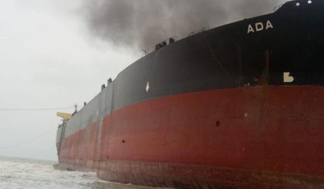 Scrapped VLCC ADA caught fire during dismantling works at Gadani shipbreaking yard on Jul 16, Pakistan. 20 wrokers were reported rescued, 4 remained trapped inside. Photo The Express Tribune, Pakistan.