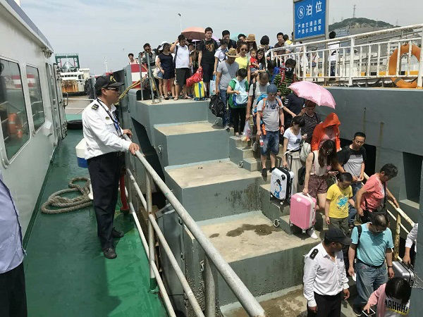 图说:暑假期间,从小洋山乘船前往嵊泗列岛游玩的旅客众多。来源/洋山港海事局供图